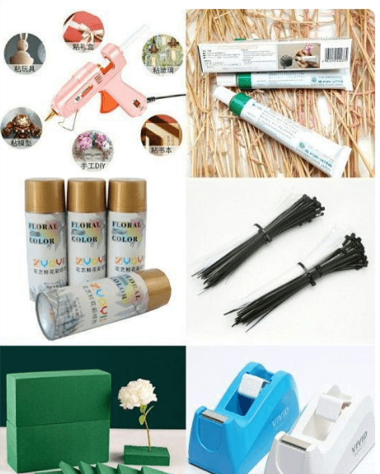 - Hot-melt gun/hot-melt glue stick: mostly used for handmade flower decoration, adhesion