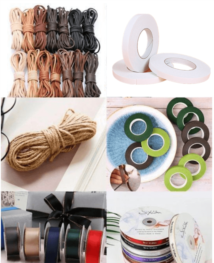 - Floral tape: white is mostly used for holding flowers, green and brown are mostly used for flower branch winding